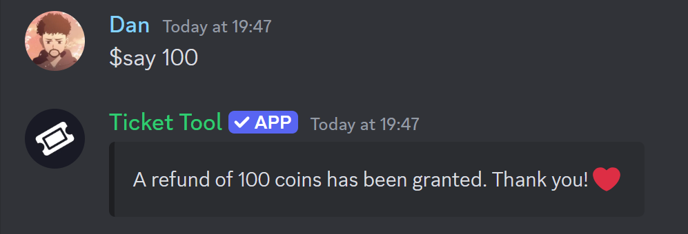 If the custom command is triggered outside of a ticket, the message will not be sent to the channel.