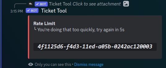 If your server does not have premium, please note that you will have a server limit of 10 tickets every 10 seconds, and 1 ticket per 10 seconds per user. You can remove these limits by purchasing Ticket Tool Premium