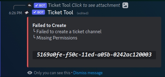 This error is likely caused by Ticket Tool lacking permissions: