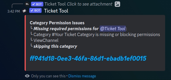 This error takes place when your categories' permissions interfere with Ticket Tool:
