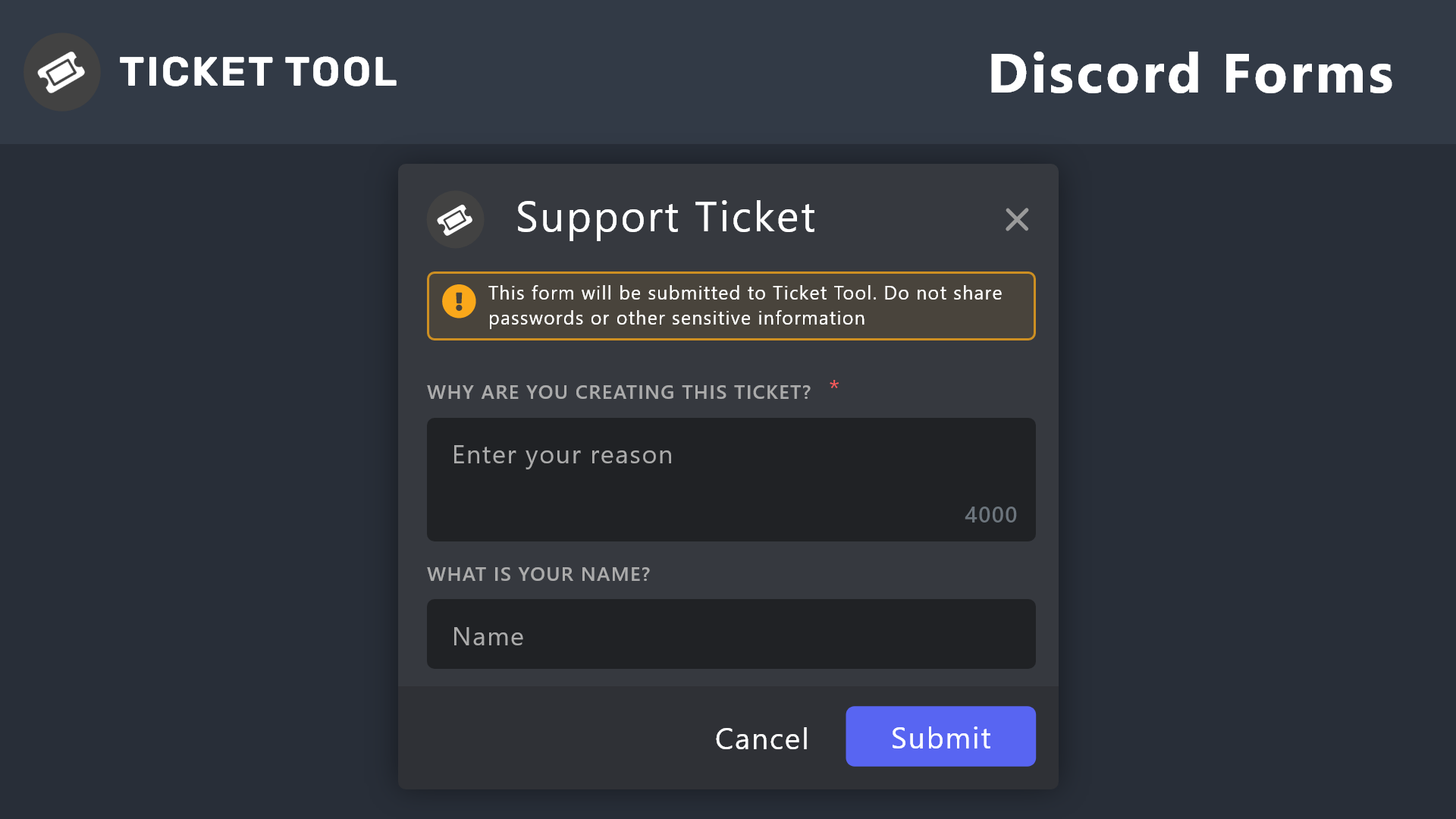 Forms, Discord Modals support