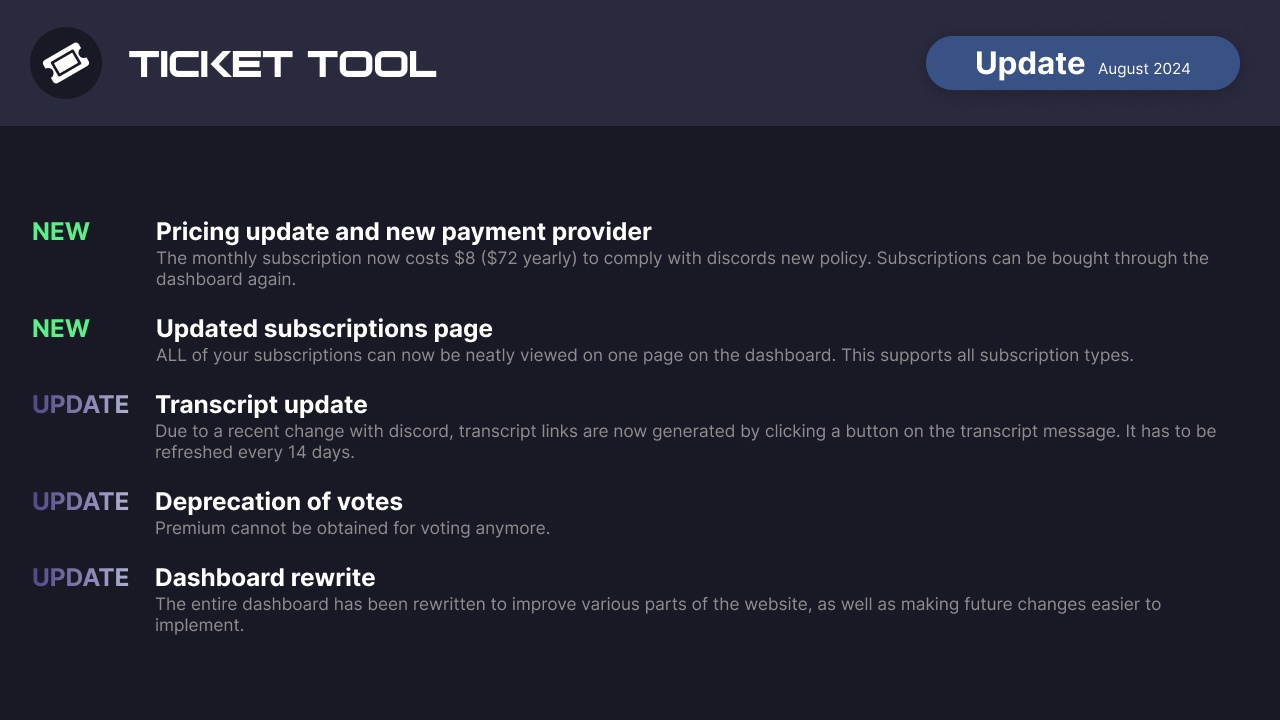 New Bot Switcher command for switching between Premium and non Premium Ticket Tool!