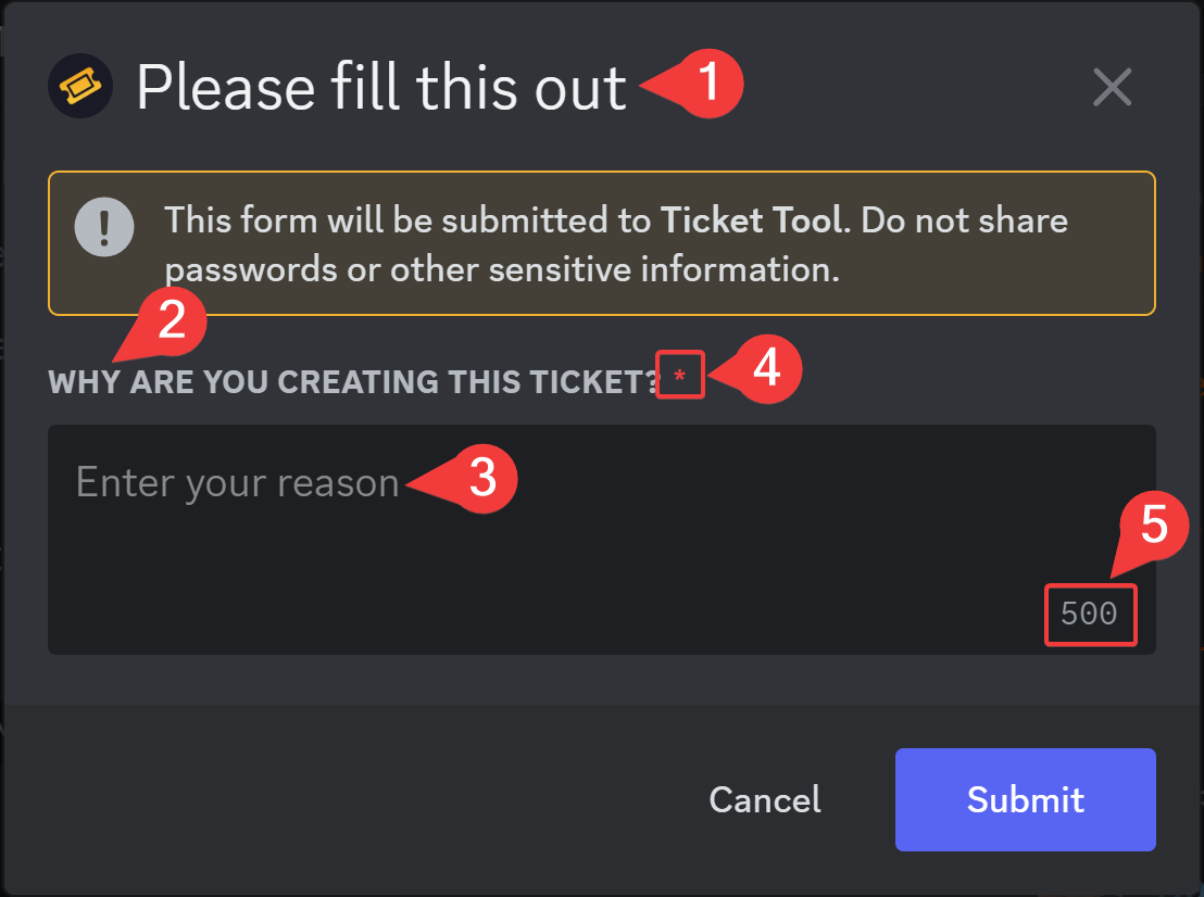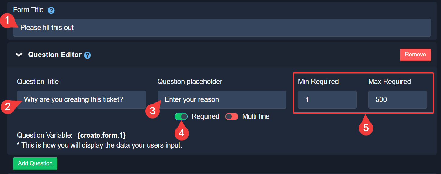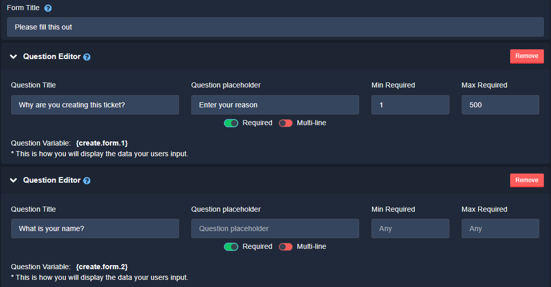 Maximum Input → The maximum amount of characters that should be used when responding to a form, leave empty for the maximum, which is 4000